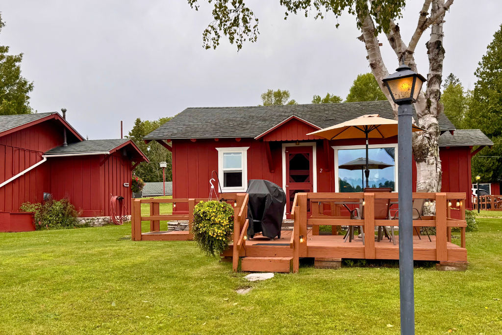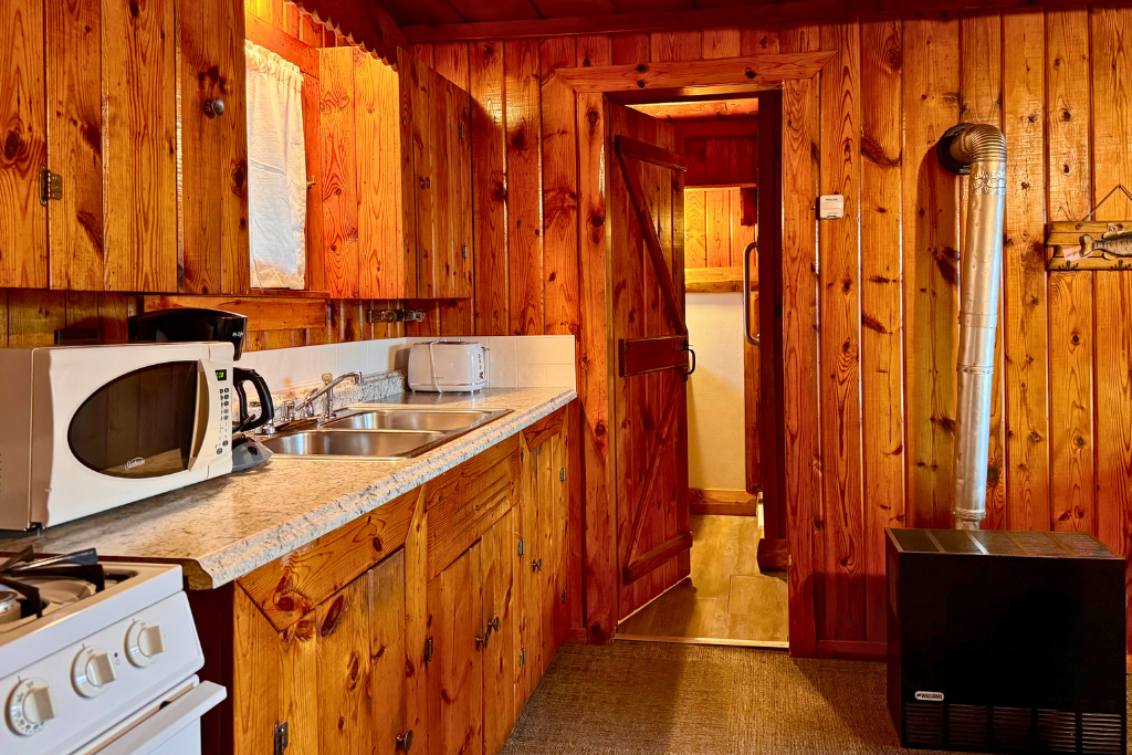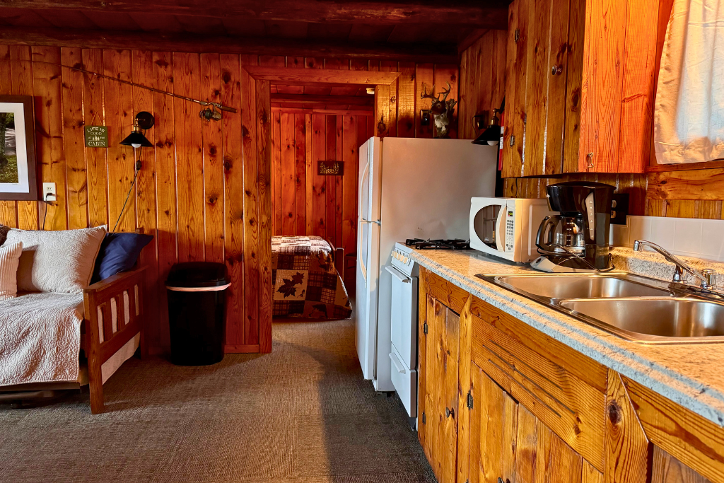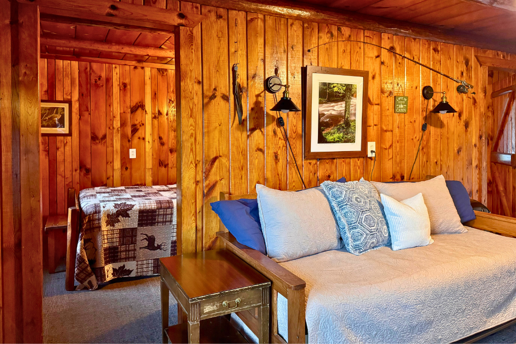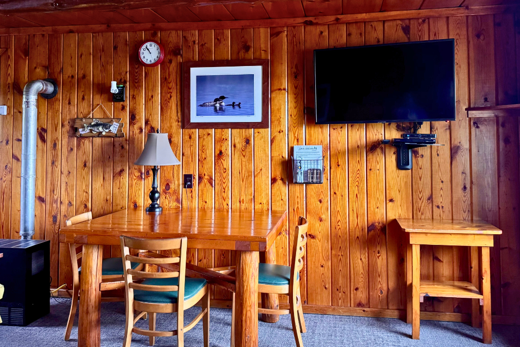 Small dock directly in front of this cabin extends into the lake and includes the use of 1 row boat with an upgrade option to motor as a daily or weekly rental.