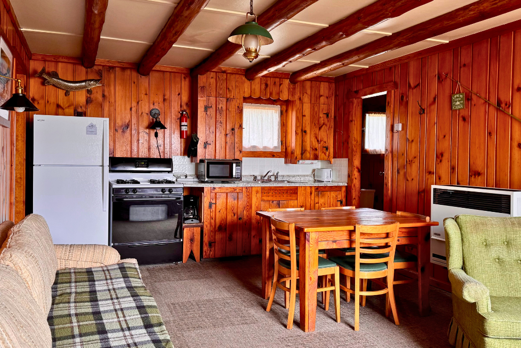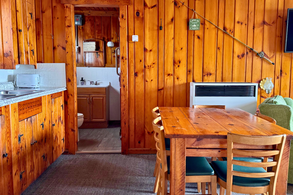 Small dock directly in front of this cabin extends into the lake and includes the use of 1 row boat with an upgrade option to motor as a daily or weekly rental.
