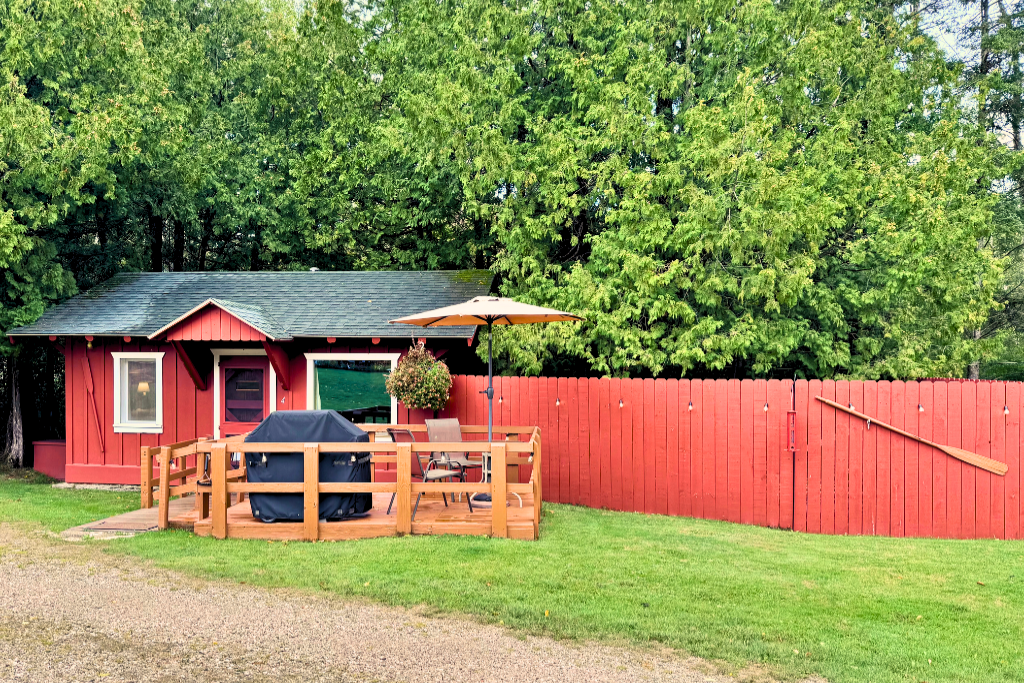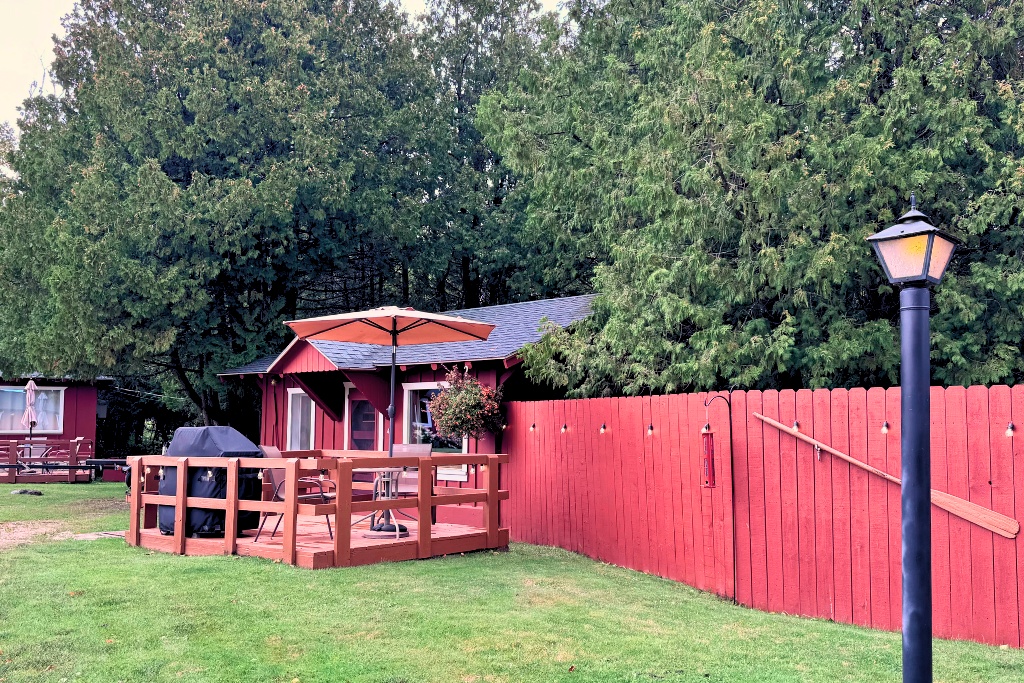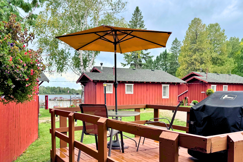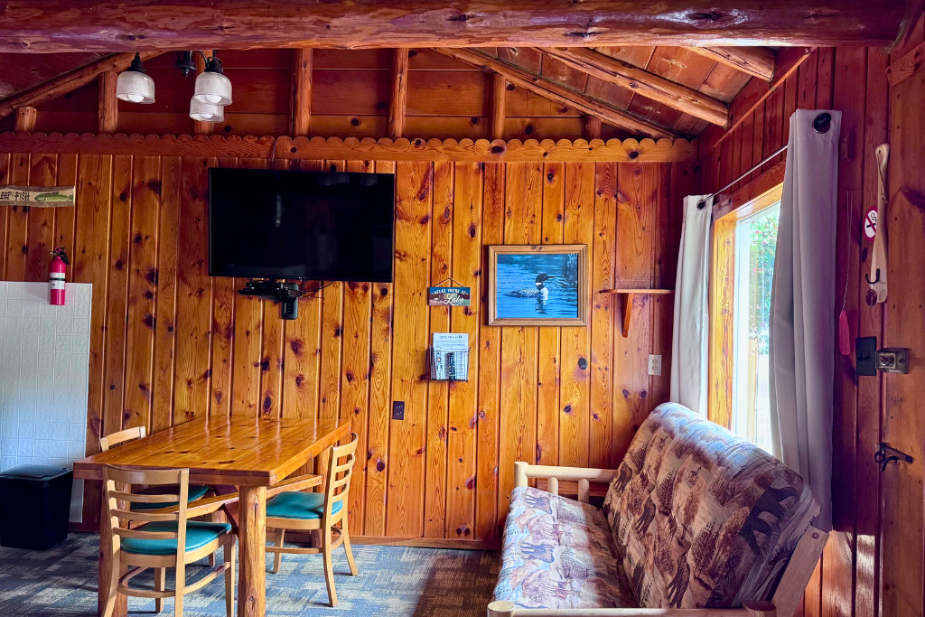 This cabin is not lakefront though it is very close. This cabin includes the use of a row boat with an upgrade option to motor as a daily or weekly rental.